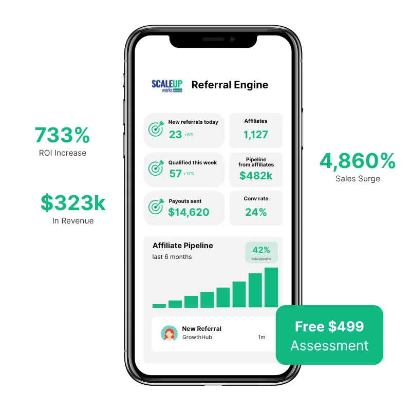 The ScaleUp Works Affiliate Program rewards individuals and organizations who refer new clients to any of our monthly marketing, outreach, or AI Voice Agent service packages.